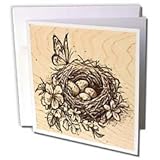 Butterfly on Birds Nest with Eggs Greeting Card is measuring 5.5w x 5.5h. Greeting Cards are sold in sets of 6 or 12. Give these fun cards to your friends and family as gift cards, thank you notes, invitations or for any other occasion. Greeting Cards are blank inside and come with white envelopes.